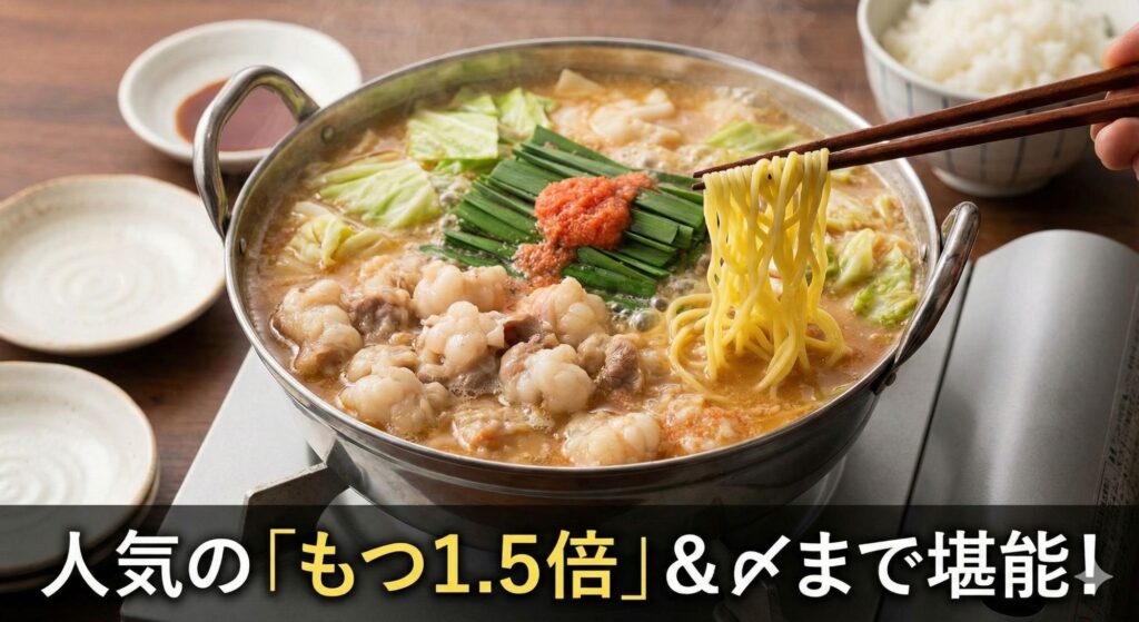 - カスタマイズ可能:もつ増量や〆のバリエーションで自分好みに