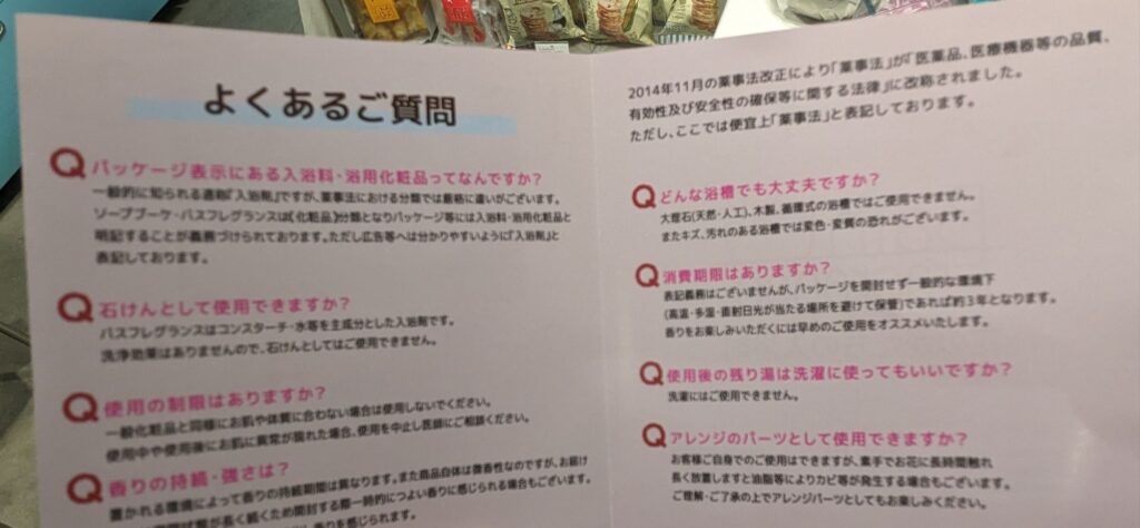 Q: パッケージ表記にある入浴剤・浴用化粧品ってなんですか?