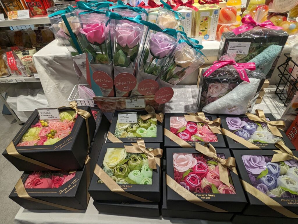バスフレグランスは、その名の通り、花びらの形をした入浴剤です。写真でもわかるように、シャリテローズ フラワーバスペタル(1980円税込)やシャン・ド・フルール ボックスバスペタル(3850円税込)など、美しいデザインが特徴です。これらは、見た目の美しさだけでなく、お風呂に浮かべると心地よい香りが広がり、バスルーム全体が癒しの空間に変わります。