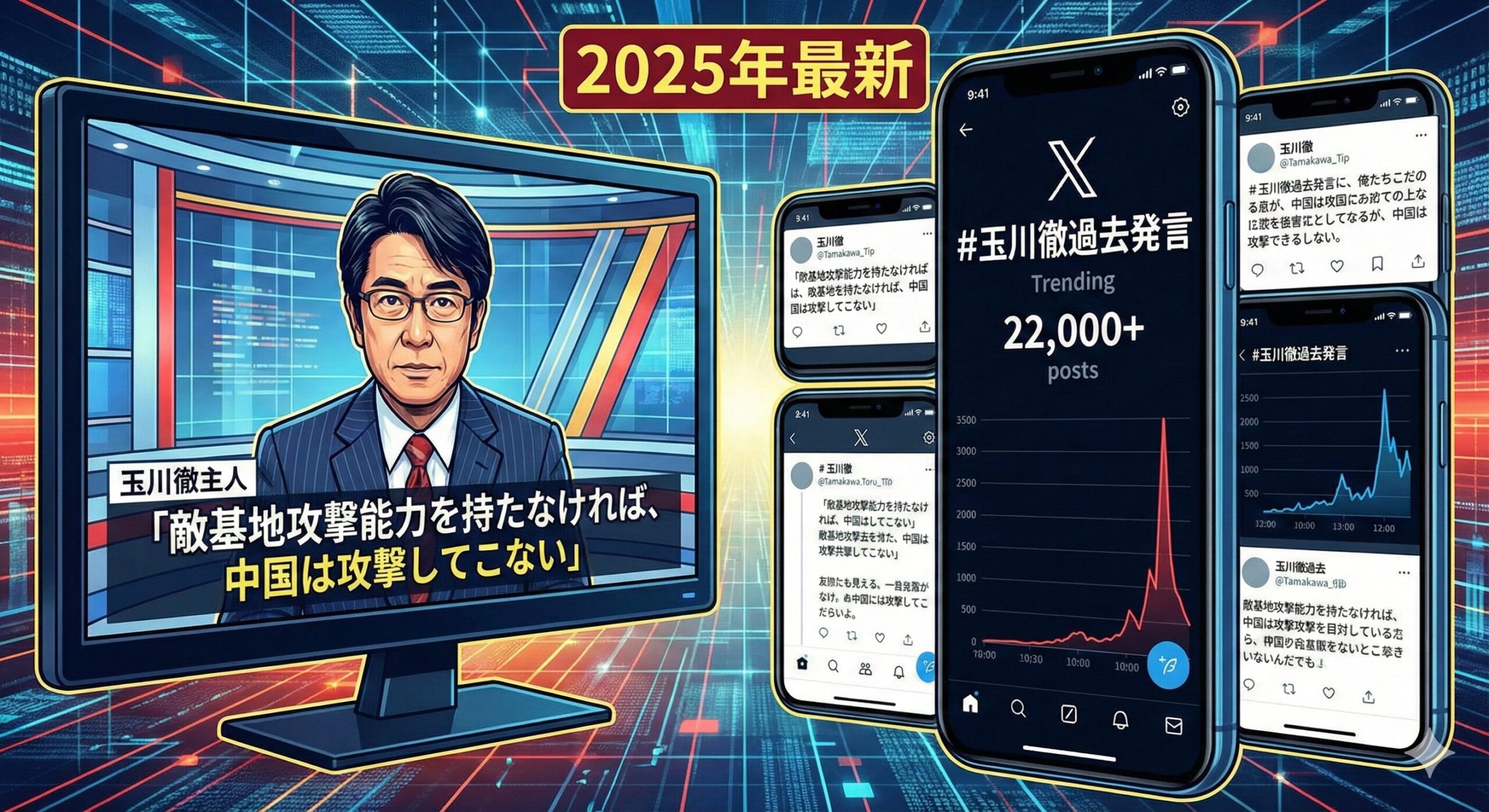 2025年11月、日中関係の緊張が高まる中、テレビ朝日のコメンテーター・玉川徹氏の過去発言がX(旧Twitter)で再び注目を集めています。「日本が敵基地攻撃能力を持たなければ、中国は攻撃してこない」という発言が、現在の状況と照らし合わせて議論を呼んでいます。本記事では、発言の内容とXでの反応、過去の類似事例について解説します。