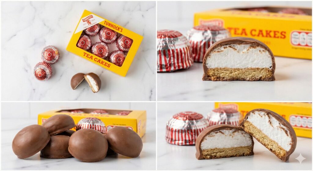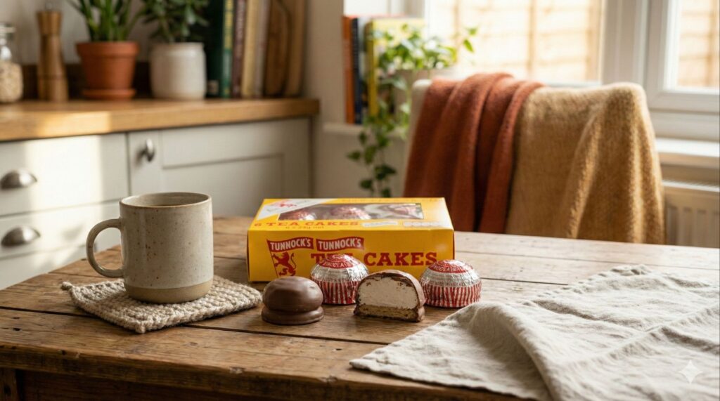 まず手に取ったのは、黄色いパッケージが目印のTUNNOCK’S(ターノック)ティーケーキ。1890年創業のスコットランドの老舗ブランドで、赤い星マークの個包装がレトロで可愛い。