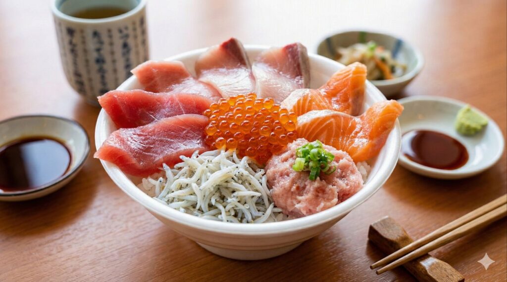 - 2巡目:特に気に入ったネタ+いくら&ネギトロでオリジナル海鮮丼