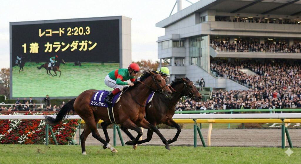 第45回ジャパンカップは、4番人気のカランダガンが1番人気のマスカレードボールとの壮絶なマッチレースを制し、アタマ差で優勝を飾りました。勝ち時計の2分20秒3は、2018年にアーモンドアイがマークした従来のレコード2分20秒6を0秒3上回る日本レコードとなりました。