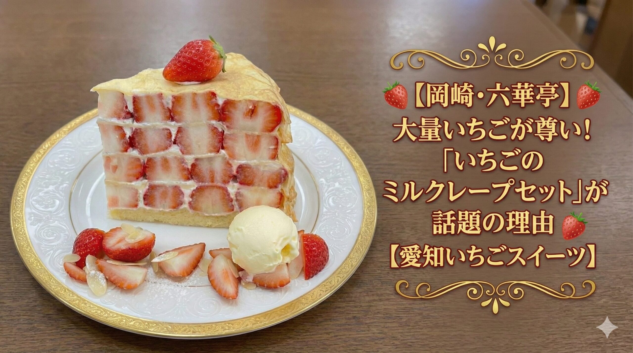 いちごが大好きな人、写真映えするスイーツを探している人、名古屋近郊で日帰りのカフェ旅をしたい人には、六華亭の「いちごのミルクレープセット」はぴったりの選択肢です。行列や待ち時間には注意しつつ、苺シーズンのタイミングで、ぜひ一度その”苺まみれの幸せ”を体験してみてください。
