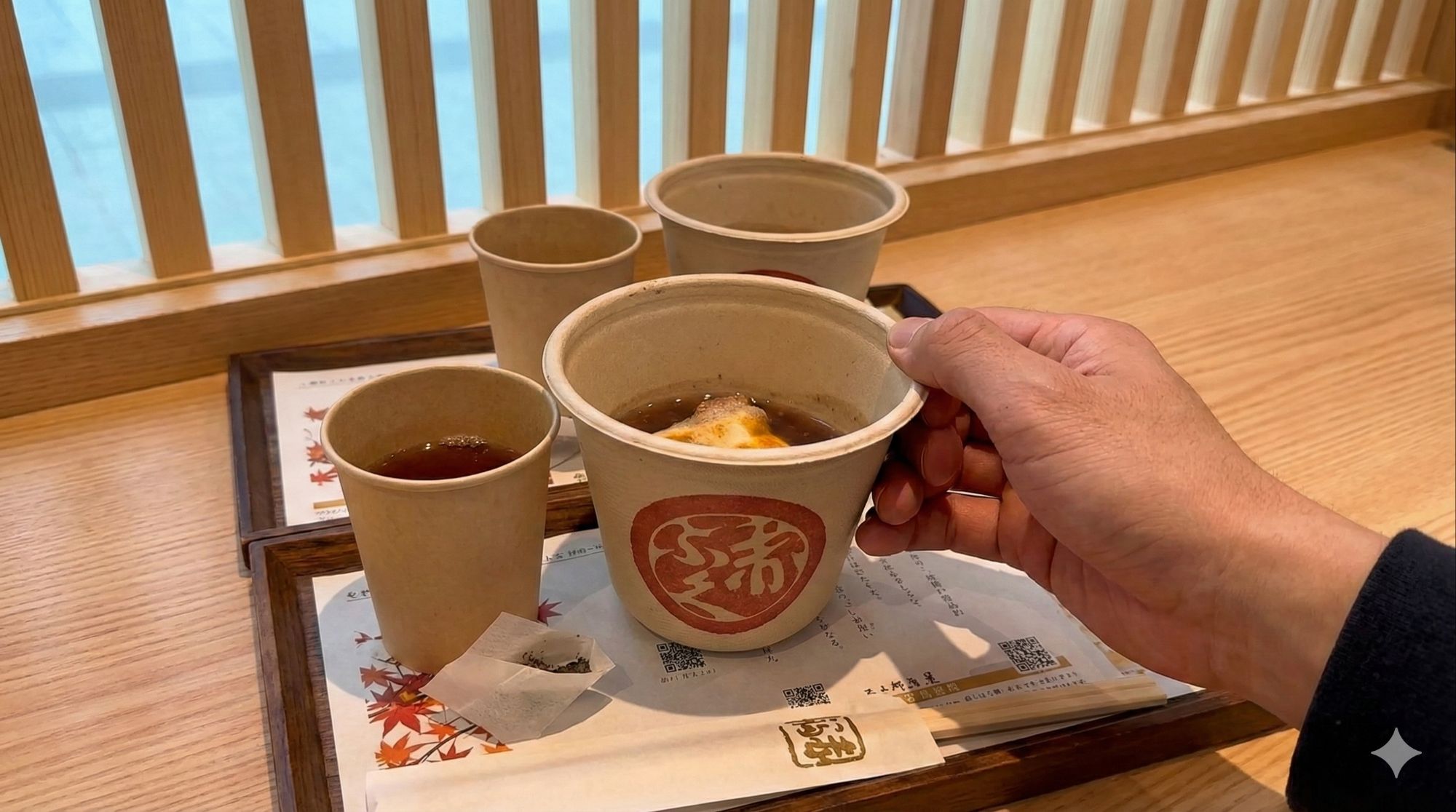 運ばれてきた赤福ぜんざいは、見た目はシンプルなのに、表面から立ちのぼる湯気と、つやつやしたあずきの粒にすでに心を掴まれます。ひと口すくって口に運ぶと、甘さはしっかり感じるのに、後口は驚くほど軽やかで、伊勢で食べた赤福のイメージそのままの「やさしい甘さ」が、梅田の真ん中でふっと肩の力を抜いてくれるようでした。