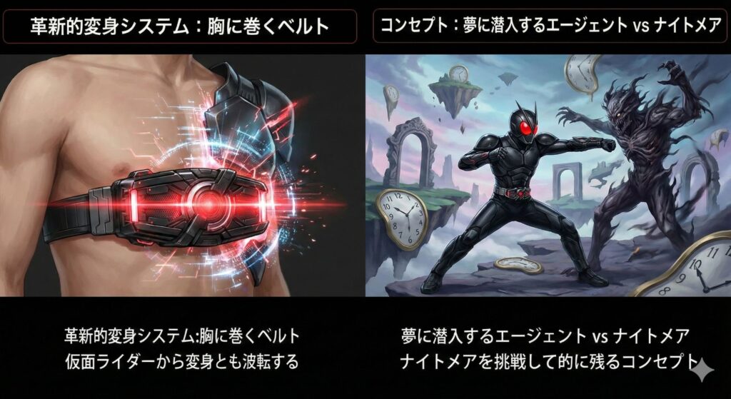主人公は普通の青年でありながら、夢の中では「無敵のエージェント」として活動します。最悪の現実をもたらす悪夢の怪人「ナイトメア」から人類を守るため、夢の世界でミッションを遂行するという、これまでの仮面ライダーにはなかった独特の世界観が構築されています。