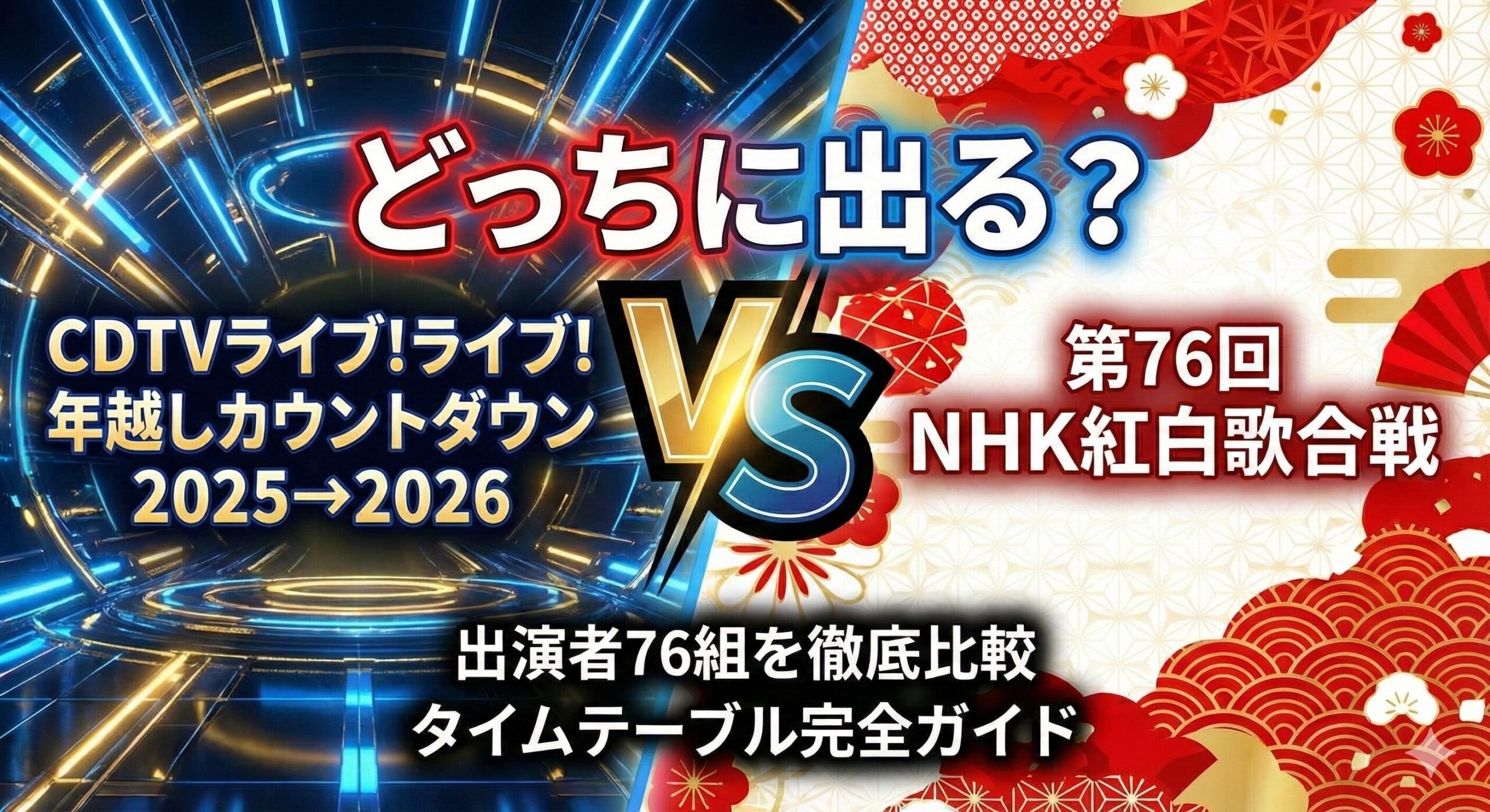CDTV年越しカウントダウン2025→2026 VS 紅白歌合戦|出演者76組を徹底比較【どっちに出る?タイムテーブル完全ガイド】