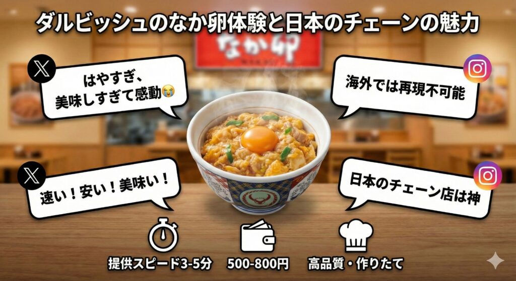 ダルビッシュ有選手の「なか卯」での感動体験は、日本のチェーン店が持つ世界に誇るべき価値を改めて示してくれました。速さ、美味しさ、コスパの三拍子が揃った日本のチェーン店は、海外で暮らす日本人にとってかけがえのない存在です。