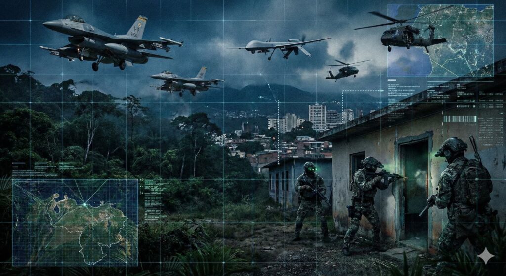 • 地上では特殊部隊(デルタフォースなど)がマドゥロの居場所を急襲し、同時にベネズエラ軍の防空網や指揮通信網をサイバー・電子戦で麻痺させる複合作戦でした。