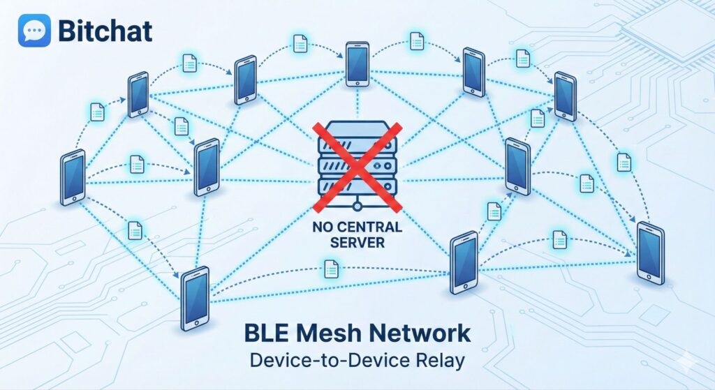 Bitchatの革新性を理解するには、その基盤となっている技術を知る必要があります。このアプリケーションの心臓部は「Bluetooth Low Energy(BLE)メッシュネットワーク」という通信技術です。