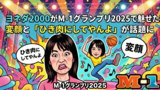 漫才 ヨネダ2000がM-1グランプリ2025で魅せた!変顔と「ひき肉にしてやんよ」が話題に M-1グランプリ2025でヨネダ2000が再び旋風を巻き起こす 2025年12月21日に放送された『M-1グランプリ2025』決勝戦で、吉本興業所属の女性お笑いコンビ・ヨネダ2000が3年ぶりの決勝進出を果たし、大きな話題となりました。惜し... 2025.12.21 漫才