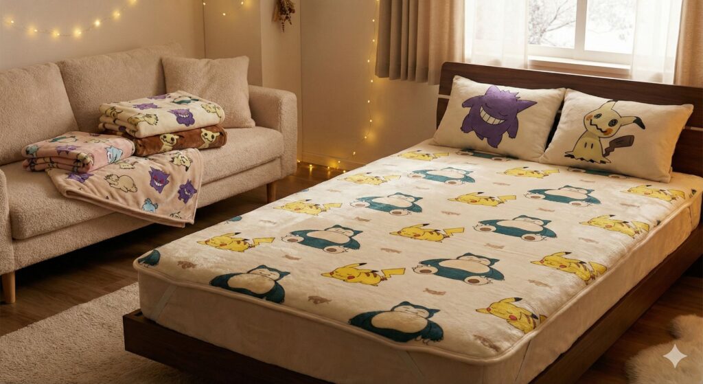 2025年12月17日、しまむらオンラインストアにてポケモンの寝具・インテリア商品が発売されました。ピカチュウ、カビゴン、ゲンガー、ミミッキュといった人気ポケモンたちが、かわいらしい寝姿でデザインされています。