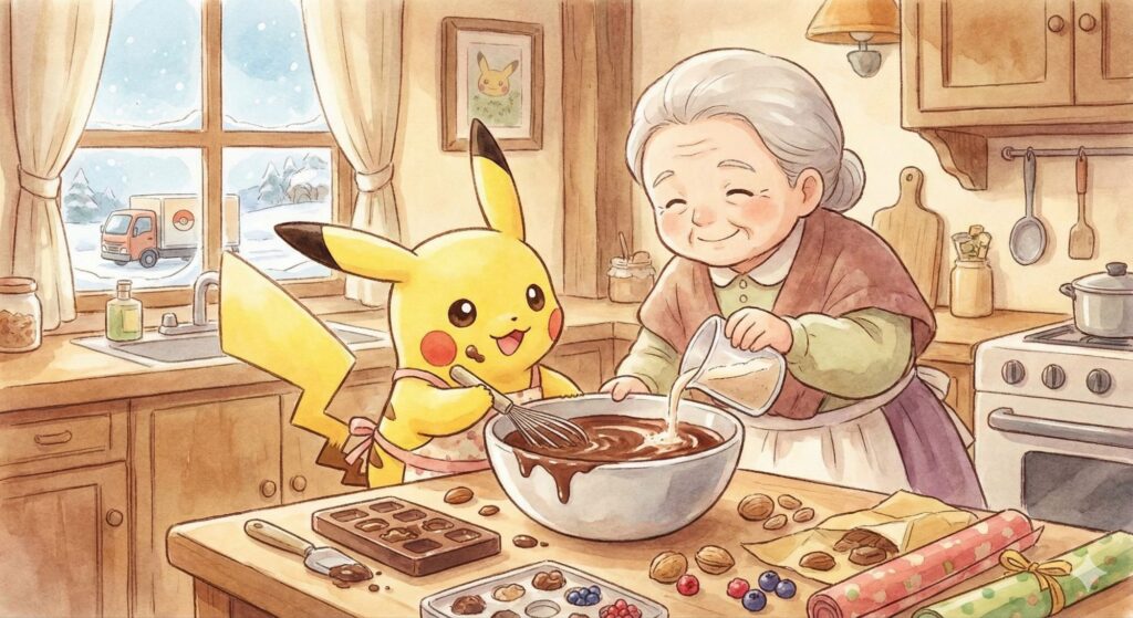 - 「ピカチュウとおばあちゃんのチョコ屋さん、ほっこりしすぎて癒される」