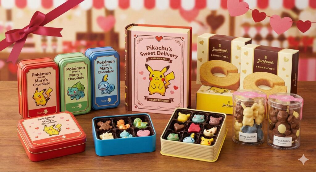2026年のバレンタインは、ポケモンセンターの「Pikachu’s Sweet Delivery」シリーズをはじめ、メリーチョコレート、ユーハイム、マイネローレンなど、複数のブランドからポケモンデザインのチョコレートが登場します。ピカチュウの愛らしいデザインと高品質なチョコレートの組み合わせは、子どもから大人まで幅広い世代に喜ばれること間違いなしです。