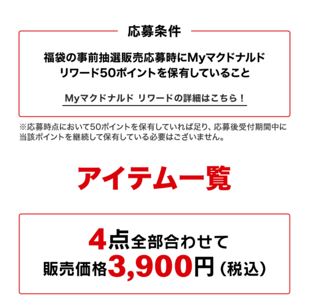 - 応募条件:マクドナルドアプリで独自ポイントを獲得する必要あり