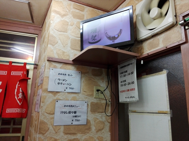 テレビも置いてあります。昔ながらの中華料理屋さんにはたいていテレビが設置してありますよね。
