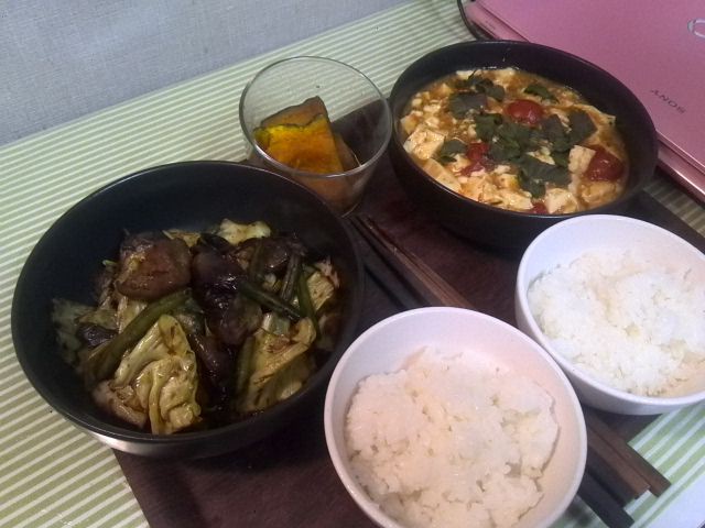 ホイコーローと麻婆豆腐 20150407 おうちご飯 X Facebook はてブ LINE Pinterest コピー 2015.04.112016.02.10 今日は中華。 テンメンジャンを使ってナスとキャベツを痛めてホイコーロー風に。 最近麻婆豆腐にトマトを入れるの凝ってます。甘くておいしい。