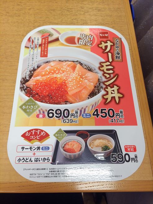 店内限定 サーモン丼を食べた!なか卯 大山店 グルメ X Facebook はてブ LINE Pinterest コピー 2016.03.062016.11.19 外観 ちょうど駅から歩いて、遊座商店街とぶつかるところになか卯があります。場所はすごく良いところですが、その割にはお客さんが入っていないような・・・ 小ジョッキのビールはなんと140円!安い! サーモン丼はちょっと高いですね。写真だと結構ボリューム満点だったのですが・・