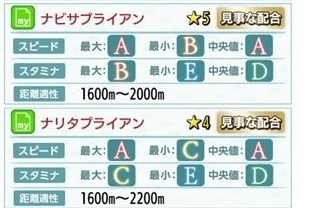 肌馬のステータスだけ考えると、アルデバランのところはキングスベストの方がよいと思います。