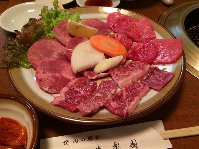 セットの焼肉がお得で美味しかった!焼肉 味楽園 大山(遊座商店街) グルメ X Facebook はてブ LINE Pinterest コピー 2016.01.162016.07.23 これは追加で頼んだハラミ 追加のレバー メニュー。お勧めはカクテキです。 カクテキの写真を撮り忘れた・・・ 外装です。1Fは天丼てんやで2Fが味楽園です。