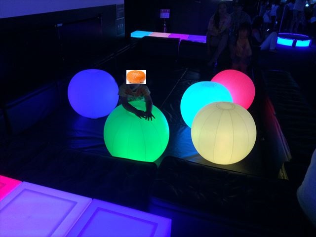 ライトアップされたボールを叩くと色が変わる不思議なボールです。