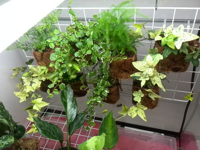 針金を使ってポケットを作る。こけ玉を作ってくっつける。ワイヤーネットを緑色に塗るなどなど。