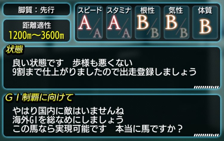 ダビマス 【ダビマス】公式BC準決勝進出!非凡持ちサイレンススズカ産駒(父ウッドマン自家製)で48位になった話と非凡の確率。スピスタAA 根性Aの馬も誕生! ダビマスの公式BCには毎回出場していますが、いつも3回戦、4回戦で負けてしまい中々良い結果が出ませんでした。2017年の末に第8回大会京都1600m(マイルCS)がありましたが、この大会では事前にガチャでサイレンススズカを入手したこともあり... 2018.01.05 ダビマス日記