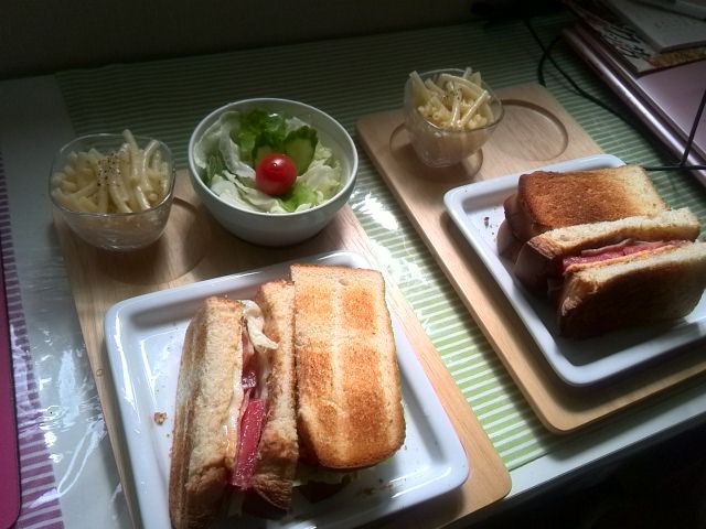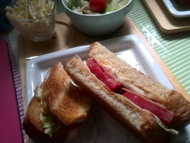 BTTTサンド BLTサンドじゃないよー 20150402 おうちご飯 X Facebook はてブ LINE Pinterest コピー 2015.04.122016.02.10 B ベーコン L レタス T トマト そして極めつけの T タコ!!! あ、すみません。卵です。 これはうまいです。基本的にはBTLサンドをベースに作りますが、日本ハムのマスタードに蜂蜜をマヨネーズと混ぜて入れてハニーマスタードにします。 パン生地はホテルブレッドの食パン。 これだけで、ホテルのラウンジで食べる味と引けを取らないぐらいおいしいです。